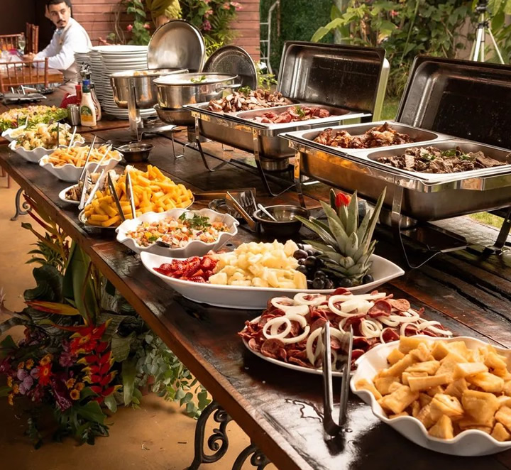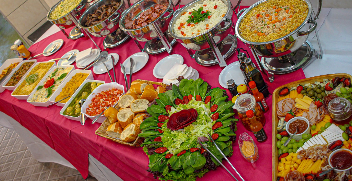 Para casamentos e batizados, oferecemos cardápios exclusivos e personalizados, com pratos que combinam sofisticação e sabor, garantindo um evento impecável e cheio de momentos especiais.